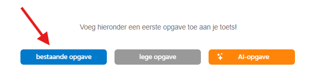 In een toets kun je op drie manieren een opgave aan je toets toevoegen. Een bestaande opgave, een lege opgave of een door AI gemaakte opgave.