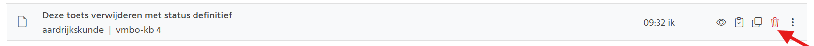 Als een toets de status ‘definitief’ heeft, is het niet mogelijk deze te verwijderen en wordt de optie 'verwijderen' niet getoond.
