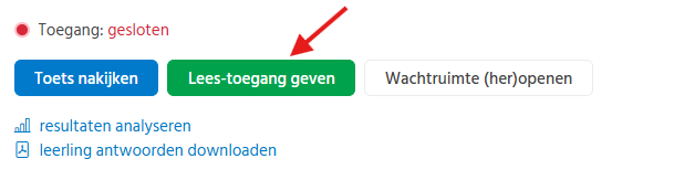 Als de digitaal afgenomen toets gesloten is door de docent dan kan de docent lees-toegang aan de leerlingen geven door op de groene knop 'Lees-toegang geven' te klikken.