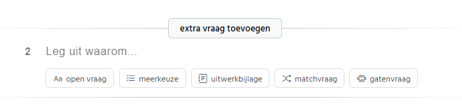 Wanneer je een nieuwe vraag toevoegt, kun je zelf het gewenste vraagtype selecteren. Klik op 'extra vraag toevoegen' en selecteer het gewenste vraagtype.