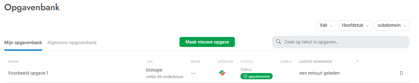 De opgave is nu toegevoegd aan je opgavebank, je kunt de opgave makkelijk terugvinden en hergebruiken.