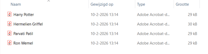 Kies je voor ‘PDF per leerling’, dan wordt er een ZIP-bestand gedownload waarin voor elke leerling een apart PDF-bestand met de antwoorden staat. Open op je computer de map voor downloads, pak het ZIP-bestand uit op een door jou gekozen locatie en open daar de afzonderlijke PDF-bestanden per leerling.
