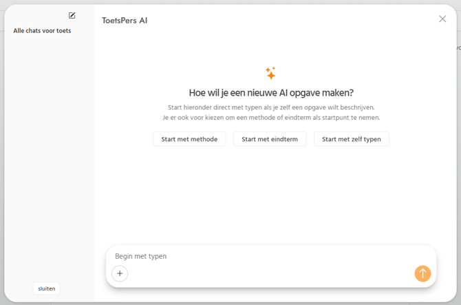 Vervolgens kan je kiezen of je de AI chat start met een methode, met een eindterm of dat je zelf begint met typen.
