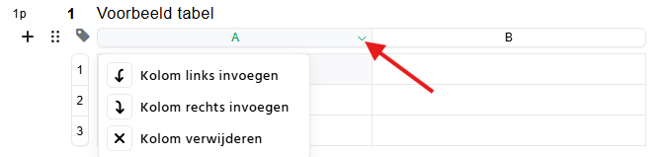 Wil je een kolom toevoegen of verwijderen? Klik op het pijltje bij de letter van de kolom waarin je een kolom wilt toevoegen of verwijderen en kies vervolgens of je links of rechts van deze kolom een nieuwe kolom wilt toevoegen, of dat je de geselecteerde kolom wilt verwijderen.