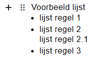 Als je klikt op ‘Lijst’, wordt er direct onder het plusteken een nieuwe lijst toegevoegd. Je kunt hier meteen beginnen met typen. Druk je op Enter, dan verschijnt er een nieuwe regel in de lijst met een opsommingsteken ervoor. Houd je Shift ingedrukt terwijl je op Enter drukt, dan verschijnt er een nieuwe regel in de lijst zonder opsommingsteken.