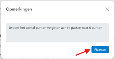 Klik hierop om op deze plek feedback te geven, bijvoorbeeld wanneer de ontwikkelaar is vergeten het aantal punten van een vraag aan te passen. Typ je opmerking in het tekstvlak en klik op ‘Plaatsen’ zodra je klaar bent.