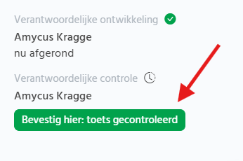 Is de toets volledig nagekeken, zijn eventuele aanpassingen verwerkt en is de toets helemaal gereed voor afname? Klik dan op ‘Bevestig hier: toets gecontroleerd’.