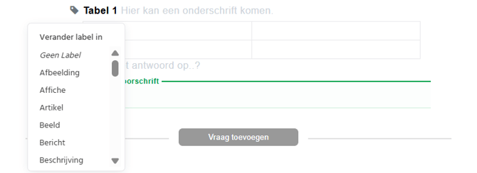 In de ToetsPers editor hebben objecten zoals bronnen, omkaderingen, tabellen en afbeeldingen een label. Je kunt dit label naar eigen inzicht wijzigen door erop te klikken.