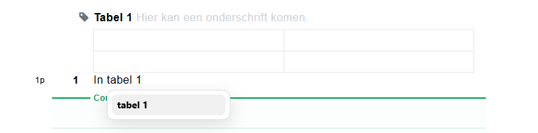 Zodra je object een label heeft, kun je een verwijzing maken door de naam van de verwijzing te typen. Na het typen van de naam van de verwijzing verschijnt er een optie met het object waarnaar je kunt refereren. Nadat je op die optie klikt is de referentie gemaakt.